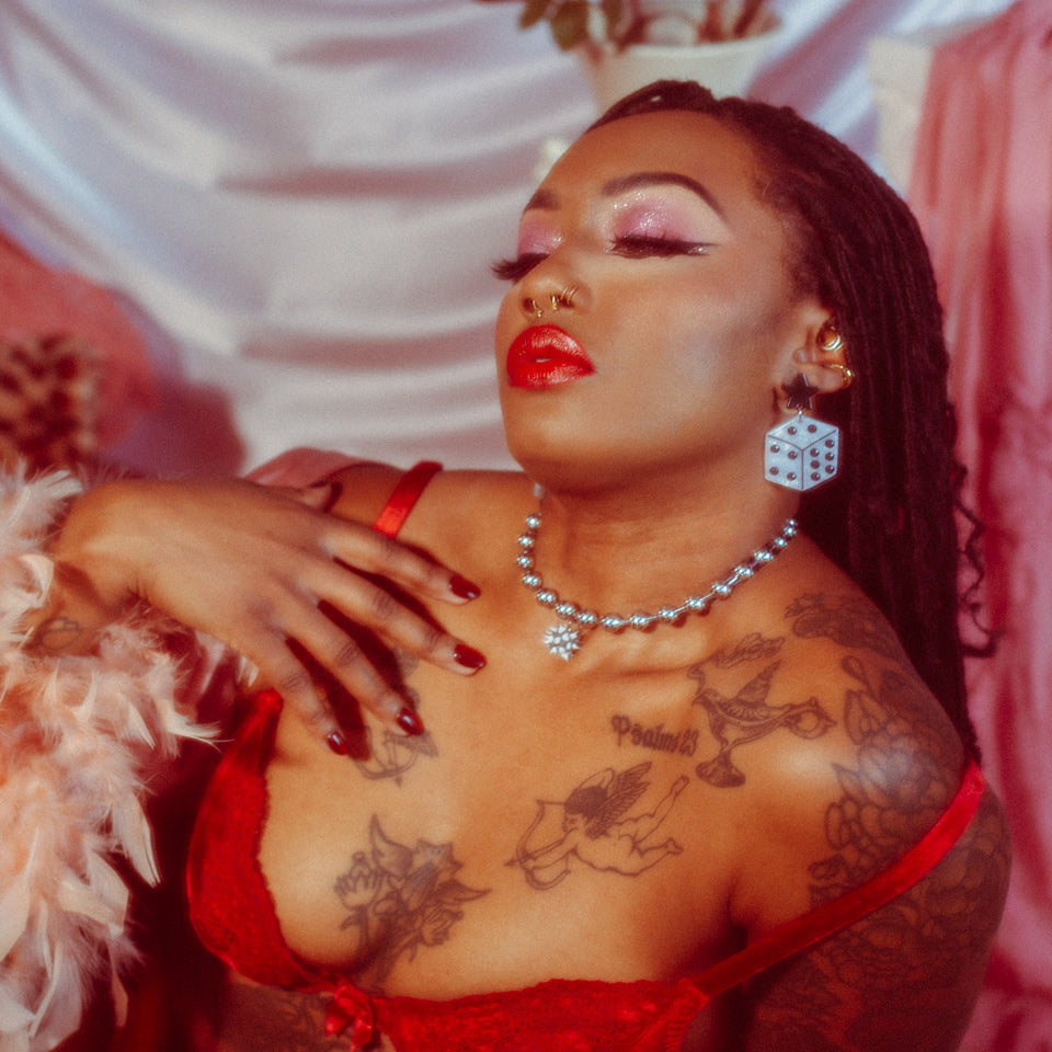A simple black and white statement piece that matches everything. Very punk, very cool, very retro. Dice for your ears. 1.5" in length.