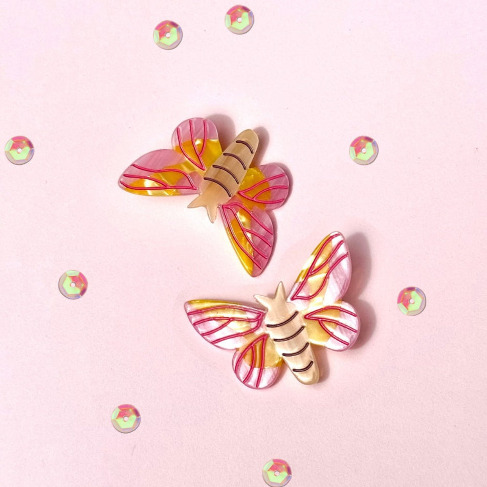 Rosy Maple Moth Hair Clip Set